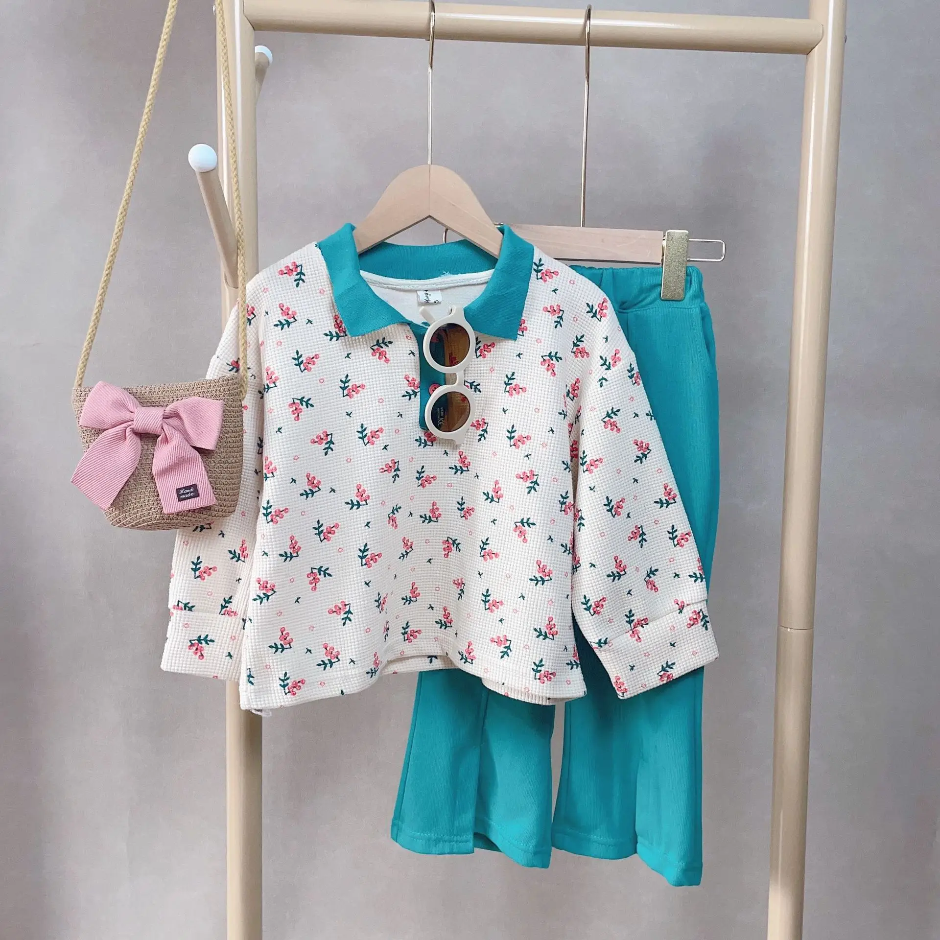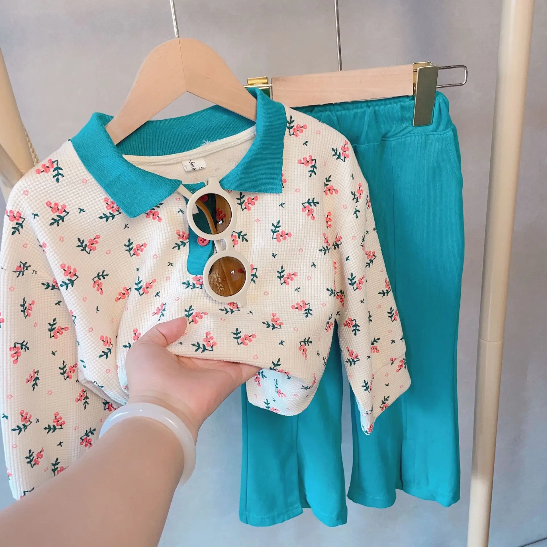 Newest Fashion Spring Kids Outfits Autumn 2pcs Outfits Top and Pants Sweet Flower Girls Sets Clothes for Kids